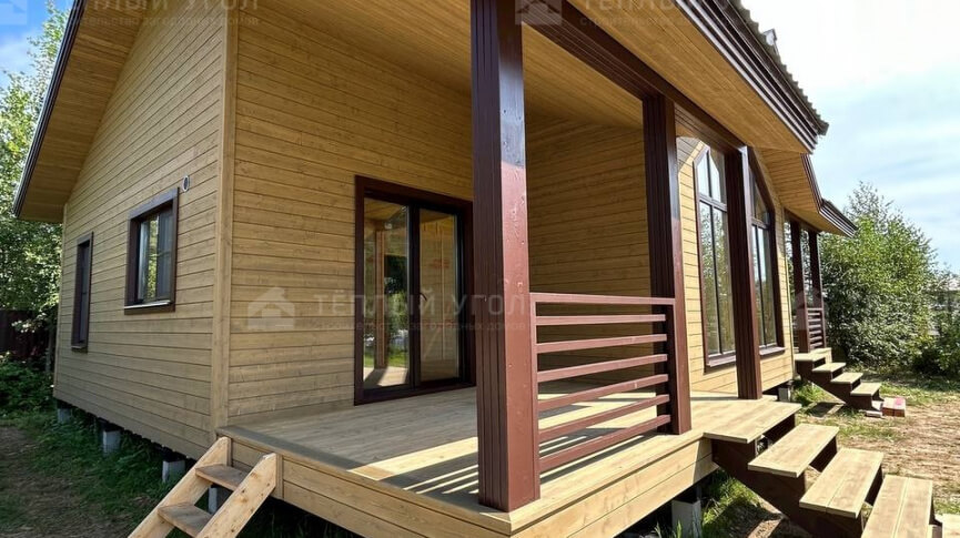 Уютный небольшой дом с мансардой из профилированного бруса. Идеально подходит для использования в качестве круглогодичной дачи.